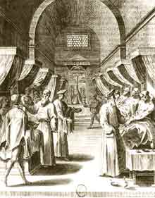 La naissance de l’Ordre de Saint-Jean remonte à 1048. Il semblerait que certains marchands de l’ancienne république maritime d’Amalfi obtinrent l’autorisation du Calife d’Egypte de construire à Jérusalem une église, un couvent ainsi qu’un hôpital afin de pouvoir prêter assistance aux pèlerins de toutes races et religions. L’Ordre de Saint-Jean de Jérusalem – communauté monastique vouée à la gestion de l’hôpital pour l’assistance des pèlerins en Terre Sainte – devint indépendant sous la conduite de son fondateur le bienheureux Gérard. Par bulle papale du 15 février 1113, le Pape Pascal II, place l’hôpital de Saint-Jean sous la tutelle du Saint-Siège, lui permettant d’élire librement ses chefs, sans interférence de la part d’autres autorités laïques ou religieuses. En vertu de cette bulle, l’hôpital devint un Ordre religieux laïc. Tous les Chevaliers étaient des religieux, liés par trois vœux monastiques : pauvreté, chasteté et obéissance.